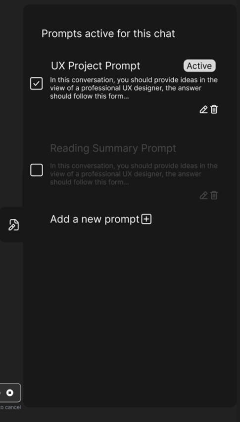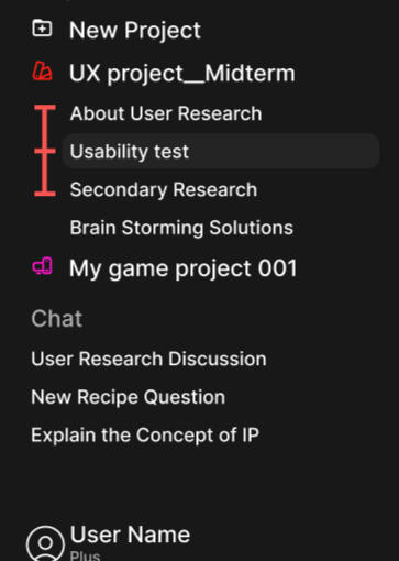 Chat-GPT Enhancement is a UX project. I did user research, focused on heavy users of Chat-GPT. I sythesized their pain points and needs, then create a new interface with several features: Personal prompt library, Auto summary with chapter style chat history, and Chat connection.